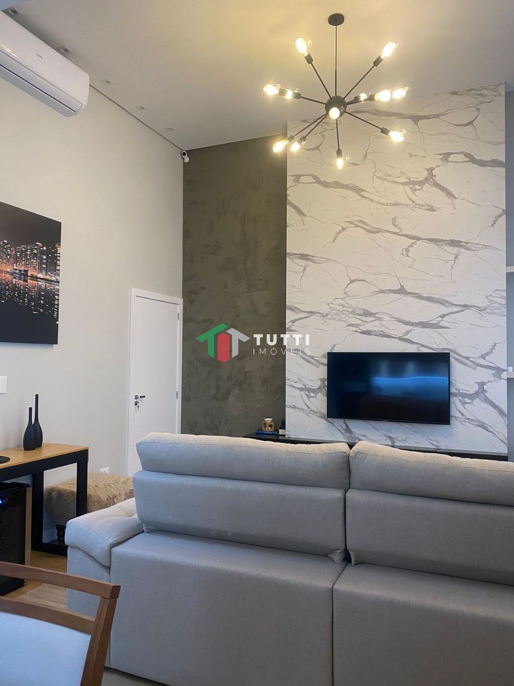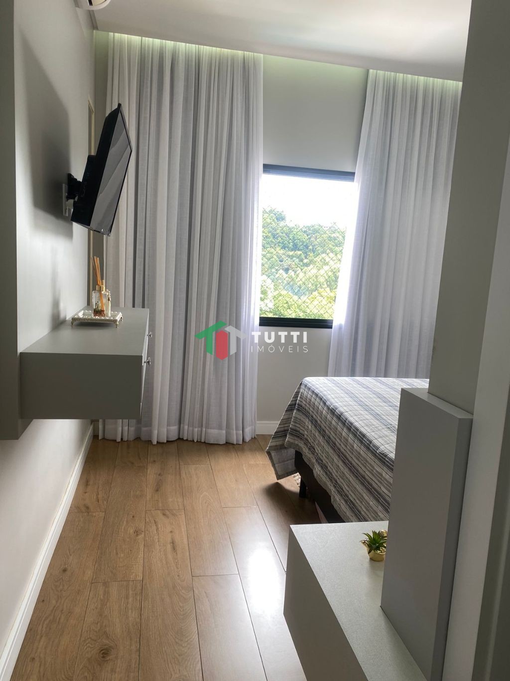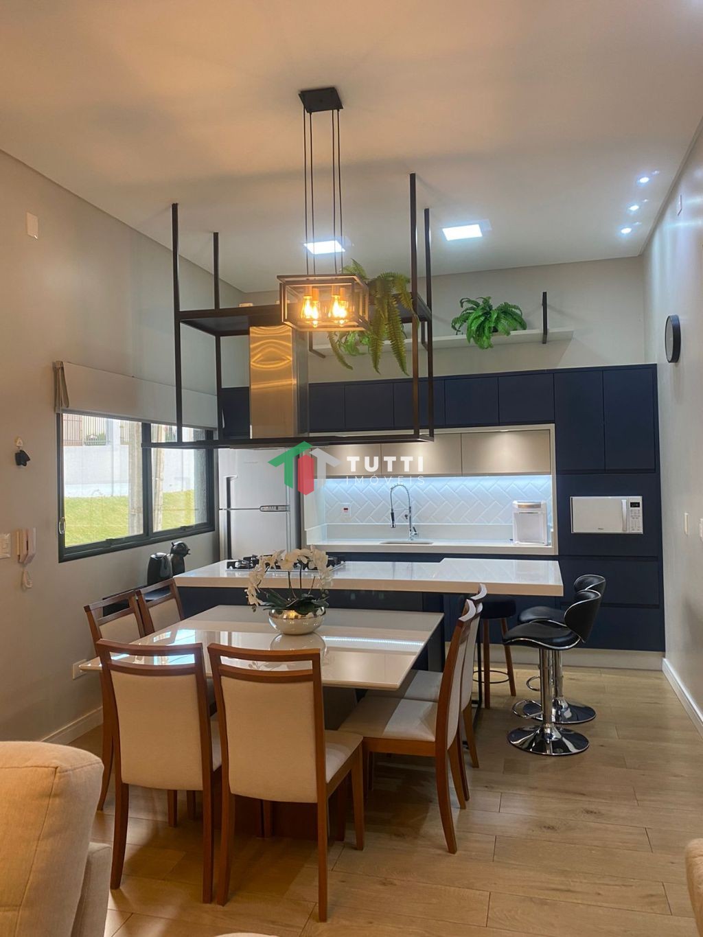 Ficam todos os moveis planejados de todos os cômodos, inclusive os eletros da cozinha, ficam os ares condicionados. Garagem coberta, banheiros mobiliados, área de churrasco completa e mobiliada.